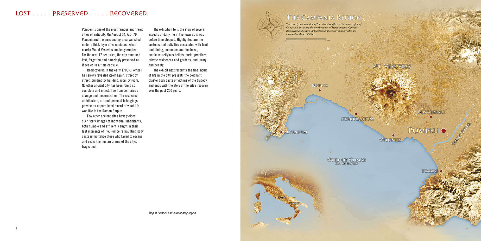 A collaboration between four natural history museums led to A Day in Pompeii, a full color guide to the remarkable exhibition on the city frozen in time by the eruption of Mt. Vesuvius in 62 AD. This commemorative booklet is designed to provide a lasting record of the exhibition "A Day in Pompeii," presented in the United States from January of 2007 through January of 2009.