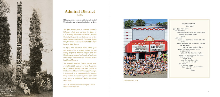 Listen to the Trees is a delightful collection of images, poetry, and people in conversation with each other across time and place. Texas-based poet and West Seattle enthusiast Sean Petrie captures the spirit and deep roots of the community with words tapped out on his 1928 Remington Portable typewriter. His poems, created on-the-spot with summer street fair goers, are matched up with a wonderful array of then-and-now images from the Southwest Historical Society. The book celebrates the beauty of West Seattle, its people, and beloved places, and is a true joy for lovers of storytelling and reminiscing. It sparkles with a vibe and love uniquely West Seattle, but familiar to small neighborhoods everywhere.